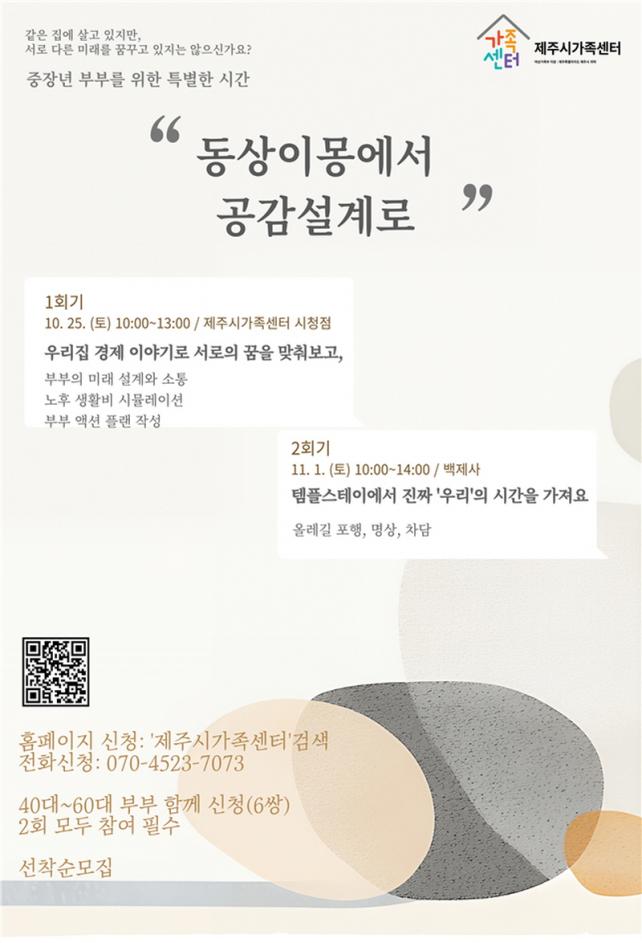[È£³²µµ¹Î½Å¹® = ÀÓÀ±Áø ±âÀÚ] Á¦Áֽô Á¦Áֽà °¡Á·¼¾ÅÍ(¼¾ÅÍÀå ¹®»óÀÎ)¿Í ÇÔ²² ÁßÀå³â ºÎºÎÀÇ °Ç°­Çϰí ÇູÇÑ °¡Á¤»ýȰÀ» Áö¿øÇϱâ À§ÇØ ¡®µ¿»óÀ̸ù¿¡¼­ °ø°¨¼³°è·Î¡¯ ÇÁ·Î±×·¥À» ¿î¿µÇÑ´Ù.