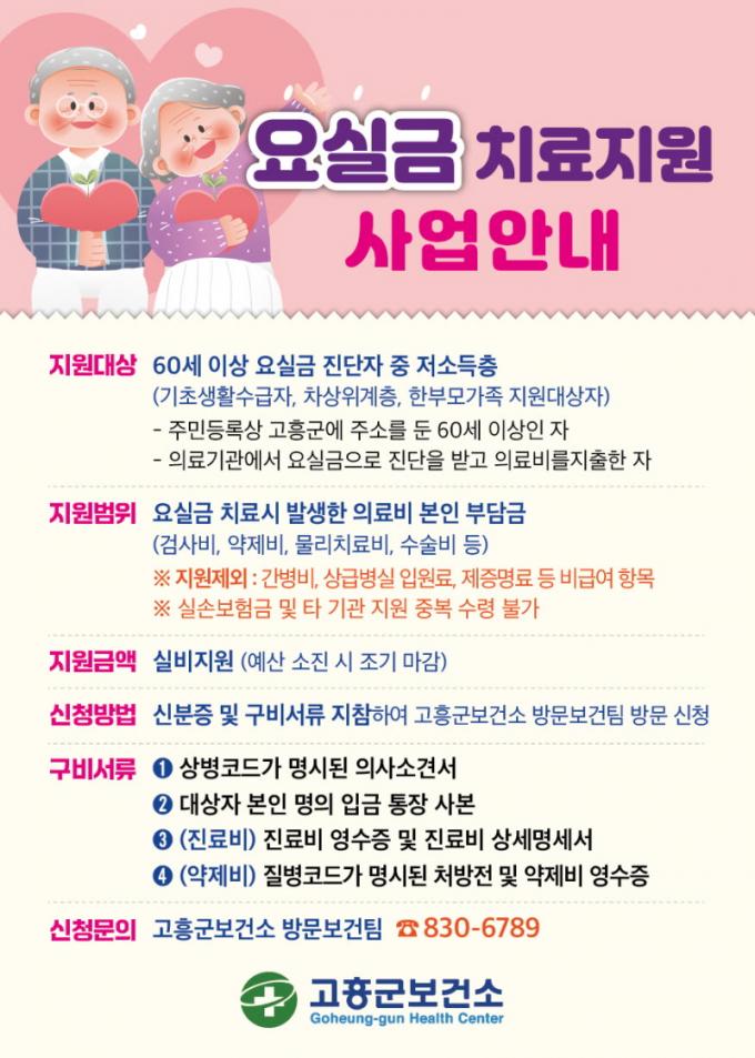 Áö¿ø ´ë»óÀº °íÈﱺ¿¡ ÁÖ¼Ò¸¦ µÐ 60¼¼ ÀÌ»ó ¾î¸£½Å Áß ÀÇ·á±â°ü¿¡¼ ¿ä½Ç±Ý Áø´ÜÀ» ¹Þ°í Ä¡·áºñ¸¦ ÁöÃâÇÑ ¡ã±âÃÊ»ýȰ¼ö±ÞÀÚ ¡ãÂ÷»óÀ§°èÃþ ¡ãÇѺθð°¡Á· µî Àú¼ÒµæÃþÀÌ´Ù.