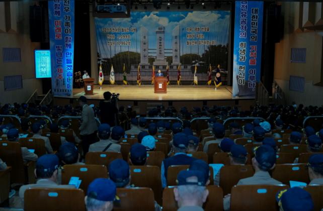 ¿À¿µÈÆ Áö»ç´Â ¡°61³â Àü ´ëÇѹα¹ÀÇ ºÎ¸§À» ¹Þ°í ¸ñ¼ûÀ» °É°í ½Î¿î ¿©·¯ºÐÀÇ Çå½Å°ú ³ë°í°¡ ¾ø¾ú´Ù¸é ¿À´ÃÀÇ ´ëÇѹα¹Àº ¾ø¾úÀ» °Í¡±À̶ó¸ç ¡°±¹°¡¿Í Áö¹æÁ¤ºÎ´Â ÂüÀüÀ¯°øÀÚ¿¡ ´ëÇÑ ¿¹¿ì¸¦ ´õ¿í °­È­ÇØ¾ß ÇÑ´Ù¡±°í ¸»Çß´Ù. ÀÌ¾î º¸ÈÆÈ¸°ü Áذø, ÂüÀü¸í¿¹¼ö´ç Àλó µî Á¦ÁÖµµÀÇ ¿¹¿ì Á¤Ã¥À» ¼³¸íÇÏ¸ç ¡°ÂüÀüÀÇ ±â·ÏÀÌ ´ÙÀ½ ¼¼´ë±îÁö ¿ÂÀüÈ÷ Àü½ÂµÉ ¼ö ÀÖµµ·Ï Áö¹æÁ¤ºÎ¿¡ ¸Ã°ÜÁø Ã¥ÀÓ°ú ¿ªÇÒÀ» ´ÙÇϰڴ١±°í µ¡ºÙ¿´´Ù.