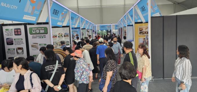 ¹Ú¶÷ȸÀå¿¡¼± ³²µµ 22°³ ½Ã±º ´ëÇ¥ ¸ÀÁýÀÌ Âü¿©ÇÏ´Â ³²µµ ¹Ì½Ä ·Îµå¸¦ ºñ·ÔÇØ ÁÖÁ¦°ü, ¹Ì½Ä¹®È­°ü, K-Ǫµå »ê¾÷°ü, ³²µµ¹Ì½Ä ·¹½ºÅä¶û µî ³²µµ¸¸ÀÇ »ö並 ´ãÀº Ư»öÀÖ´Â ÇÁ·Î±×·¥µéÀÌ °ü¶÷°´ÀÇ Å« È£ÀÀÀ» ¾ò°í ÀÖ´Ù.