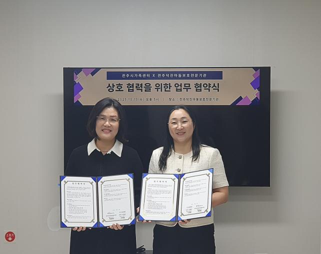 (»çÁøÁ¦°ø=¡®ÀüÁÖ´öÁø¾Æµ¿º¸È£Àü¹®±â°ü)ÀüÁÖ´öÁø¾Æµ¿º¸È£Àü¹®±â°ü(°üÀå ÃÖÀºÈñ)Àº ÀüÁֽð¡Á·¼¾ÅÍ(¼¾ÅÍÀå ÀÌÇØ°æ)¿Í ÇÔ²² ¾÷¹« Çù¾à½ÄÀ» ÁøÇàÇß´Ù. »çÁøÀº Çù¾à½ÄÀ» ÁøÇàÇÏ´Â ¸ð½À. ¿ÞÂʺÎÅÍ ÀÌÇØ°æ ¼¾ÅÍÀå, ÃÖÀºÈñ °üÀå.