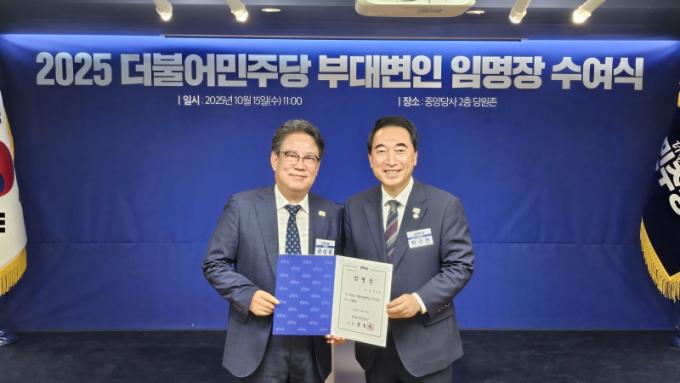 À̳¯ ´õºÒ¾î¹ÎÁÖ´ç ´ç»ç ´ç¿øÁ¸¿¡¼ ¿¸° ÀÓ¸í½Ä¿¡´Â ¹Ú¼öÇö ¹ÎÁÖ´ç ¼ö¼®´ëº¯ÀÎÀÌ Âü¼®ÇØ Á¤Ã»·¡ ´ç´ëÇ¥¸¦ ´ë½ÅÇØ ¹®»óÇÊ ºÎ´ëº¯ÀÎÀ» ºñ·ÔÇÑ 48¸íÀÇ ºÎ´ëº¯Àο¡°Ô ÀÓ¸íÀåÀ» ¼ö¿©Çß´Ù.