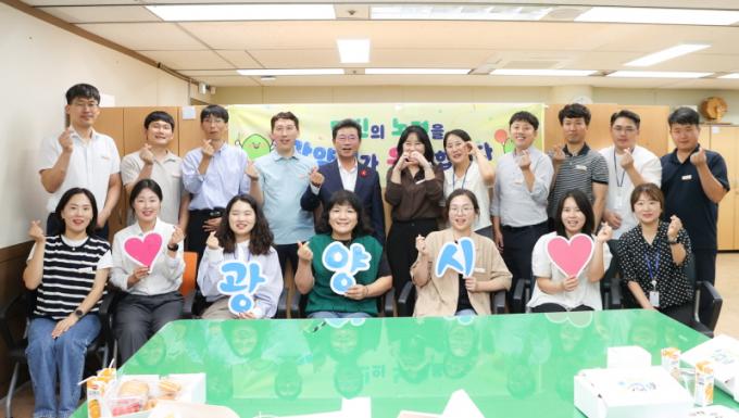 ¡®±¤¾ç½Ã°¡ ÀÀ¿øÇÕ´Ï´Ù¡¯´Â ±¤¾ç½ÃÀåÀÌ ¸Å¿ù ÇÑ ºÎ¼¸¦ ã¾Æ Á÷¿øµéÀÇ ¾Ö·Î»çÇ×À» ûÃëÇϰí, ÀÚÀ¯·Ó°Ô ÀǰßÀ» ³ª´©´Â ¼ÒÅë Çà»ç´Ù. À̳¯ Á¤ÀÎÈ ½ÃÀåÀº °ÇÃà°ú¸¦ ¹æ¹®ÇØ °£½ÄÀ» ³ª´©¸ç ÀÀ¿øÀÇ ¶æÀ» ÀüÇß´Ù.