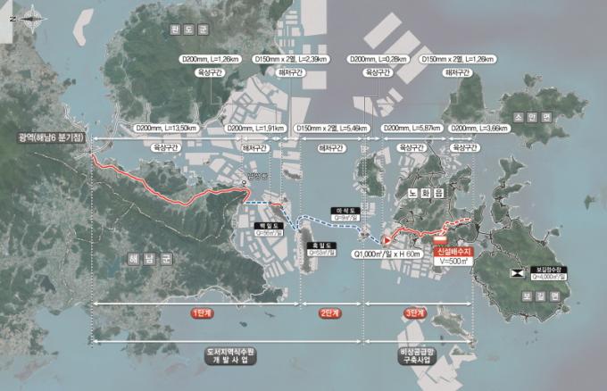 »ç¾÷Àº ±¤¿ª »ó¼öµµ¸¦ ÇØ³² ºÐ±âÁ¡¿¡¼­ ³ëÈ­À¾±îÁö »ó¼ö °ü·Î 31.1§°(À°»ó °ü·Î 21.9§°, ÇØÀú °ü·Î 9.2§°), ¹è¼öÁö 1°³¼Ò, °¡¾ÐÀå 2°³¼Ò µî ½Ã¼³ ¿ë·® 1,000§©/ÀÏÀÇ ½Ã¼³À» ¼³Ä¡ÇÑ´Ù.