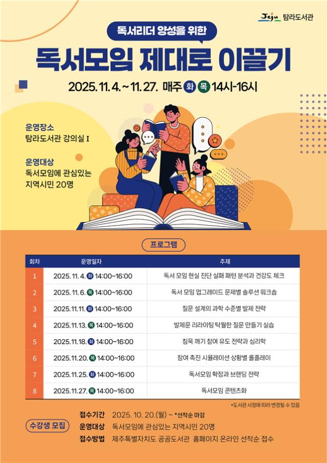 ÇÁ·Î±×·¥ Âü¿©¸¦ ¿øÇÏ´Â ½Ã¹ÎÀº 10¿ù 20ÀϺÎÅÍ Á¦ÁÖÆ¯º°ÀÚÄ¡µµ °ø°øµµ¼­°ü ´©¸®Áý(https://www.jeju.go.kr/lib)¢¡Çà»ç/ÇÁ·Î±×·¥¢¡µµ¼­°ü ÇÁ·Î±×·¥½ÅûÀ» ÅëÇØ Á¢¼öÇÒ ¼ö ÀÖÀ¸¸ç, ±âŸ ÀÚ¼¼ÇÑ »çÇ×Àº ޶󵵼­°ü(¢Ï064-728-8373)À¸·Î ¹®ÀÇÇÏ¸é µÈ´Ù.