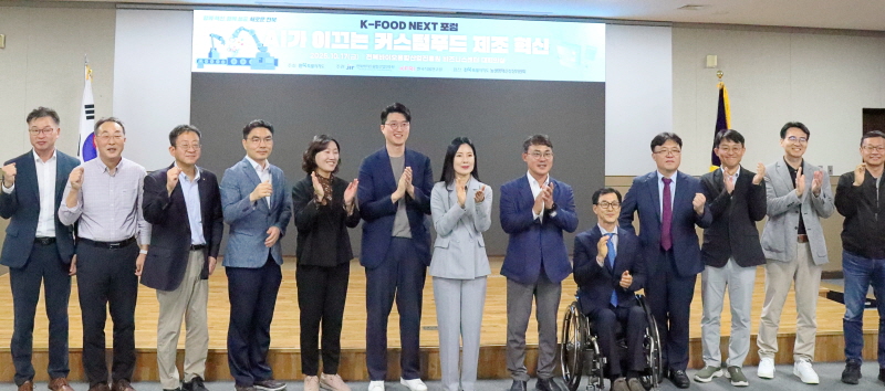 À̹ø Æ÷·³Àº ¡®AI°¡ À̲ô´Â Ä¿½ºÅÒǪµå(°³ÀθÂÃãÇü½Äǰ) Á¦Á¶ Çõ½Å¡¯À» ÁÖÁ¦·Î ¿­·ÈÀ¸¸ç, ÀüºÏƯº°ÀÚÄ¡µµ°¡ ÁÖÃÖÇϰí Çѱ¹½Äǰ¿¬±¸¿ø°ú ÀüºÏ¹ÙÀÌ¿ÀÀ¶ÇÕ»ê¾÷ÁøÈï¿øÀÌ °øµ¿ ÁÖ°üÇß´Ù. ǪµåÅ×Å© °ü·Ã ±â¾÷, ´ëÇÐ, À¯°ü±â°ü °ü°èÀÚ µî 50¿© ¸íÀÌ Âü¼®ÇØ »ê¾÷ ¹æÇâÀ» °øÀ¯Çß´Ù.