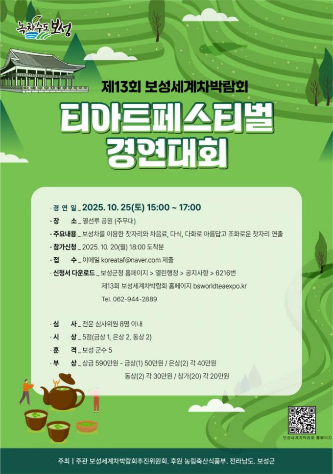 ÇÑÆí, ¡®2025 º¸¼º ¿¼±·ç À̼ø½Å ¿ª»ç¹®ÈÃàÁ¦´Â¡¯ 10¿ù 24ÀϺÎÅÍ 26ÀϱîÁö º¸¼º ¿¼±·ç °ø¿ø ÀÏ¿ø¿¡¼ °³ÃֵǸç, ¡ã±¹°¡À¯»ê¾ßÇà, ¡ãÁ¦2ȸ ´Ù~û³âÆä½ºÆ¼¹ú, ¡ãÁ¦13ȸ º¸¼º¼¼°èÂ÷¹Ú¶÷ȸ, ¡ãÁ¦3ȸ ´ëÇѹα¹ Â÷³ª¹« ºÐÀç´ëÀü, ¡ãÀü³² ¿ì¼ö ºÐÀç ´ëÀü, ¡ã´Ù¹®È°¡Á· ÇѸ¶À½ ÃàÁ¦ µî 60¿© °³ ÇÁ·Î±×·¥ÀÌ ¾î¿ì·¯Áø ÅëÇÕÃàÁ¦·Î ÁøÇàµÈ´Ù.