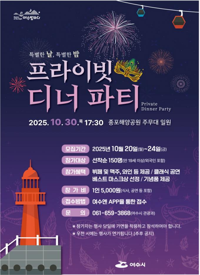 ¡®ÇÁ¶óÀ̺ø µð³Ê ÆÄƼ¡¯´Â ¿©¼ö ¹ã¹Ù´Ù¸¦ ¹è°æÀ¸·Î °¡¸éÀ» ¾²°í ½Ä»ç¿Í °ø¿¬À» ÇÔ²² Áñ±â´Â Á¾ÇÕÇü ¾ß°£°ü±¤ Æ¯È ÇÁ·Î±×·¥À¸·Î Áö³ÇØ ½Ã¹Î°ú °ü±¤°´ÀÇ Å« È£ÀÀÀ» ¾òÀº ¹Ù ÀÖ´Ù.