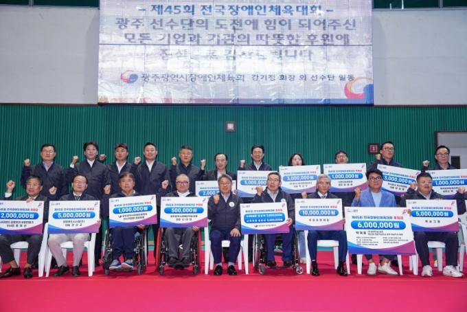 ±¤ÁÖ±¤¿ª½ÃüÀ°È¸(ȸÀå °±âÁ¤ ±¤ÁÖ±¤¿ª½ÃÀå)´Â 17ÀÏ ±¤ÁÖ½ÃÀå¾ÖÀα¹¹ÎüÀ°¼¾ÅÍ¿¡¼ °±âÁ¤ ȸÀå°ú ¼¿ë±Ô ±¤ÁÖ½ÃÀÇȸ ºÎÀÇÀå, ±â°ü´Üü ȸÀå, ¼±¼ö, ÀÓ¿ø µîÀÌ Âü¼®ÇÑ °¡¿îµ¥ ¡®Á¦45ȸ Àü±¹Àå¾ÖÀÎüÀ°´ëȸ ±¤ÁÖ¼±¼ö´Ü °á´Ü½Ä¡¯À» °¡Á³´Ù.