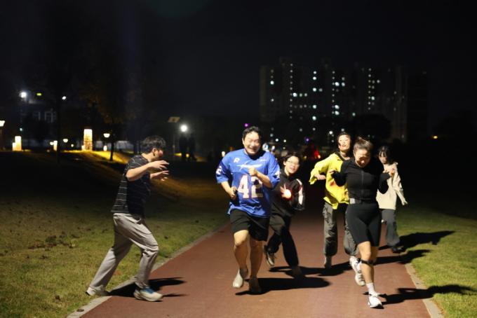¿ÀÈÄ 7½Ã, ½Å³ª´Â ÀüÀÚÀ½¾Ç(EDM)¿¡ ¸ÂÃç Áغñ ¿îµ¿À» ¸¶Ä£ 500¿© ¸íÀÇ Âü°¡ÀÚµéÀº ½ÅÈ£¿Í ÇÔ²² °¡Á·¡¤Ä£±¸ ´ÜÀ§·Î Á¶¸¦ ³ª´² Ãâ¹ßÇß´Ù. Ȳ·æÁ¤¿ø À½¾ÇºÐ¼ö µÚÆí¿¡¼ ½ÃÀÛÇØ Ȳ¹Ì¸£·£µå¸¦ ÇÑ ¹ÙÄû µ¹¾Æ ¡®Æ©ºê¡¯ Àå¾Ö¹°À» Åë°úÇϰí, ¿¬²ÉÁ¤¿øÀ» °ÅÃÄ ´Ù½Ã ½ÃÀÛÁ¡À¸·Î º¹±ÍÇÏ´Â 2.5km ÄÚ½º¿´´Ù.