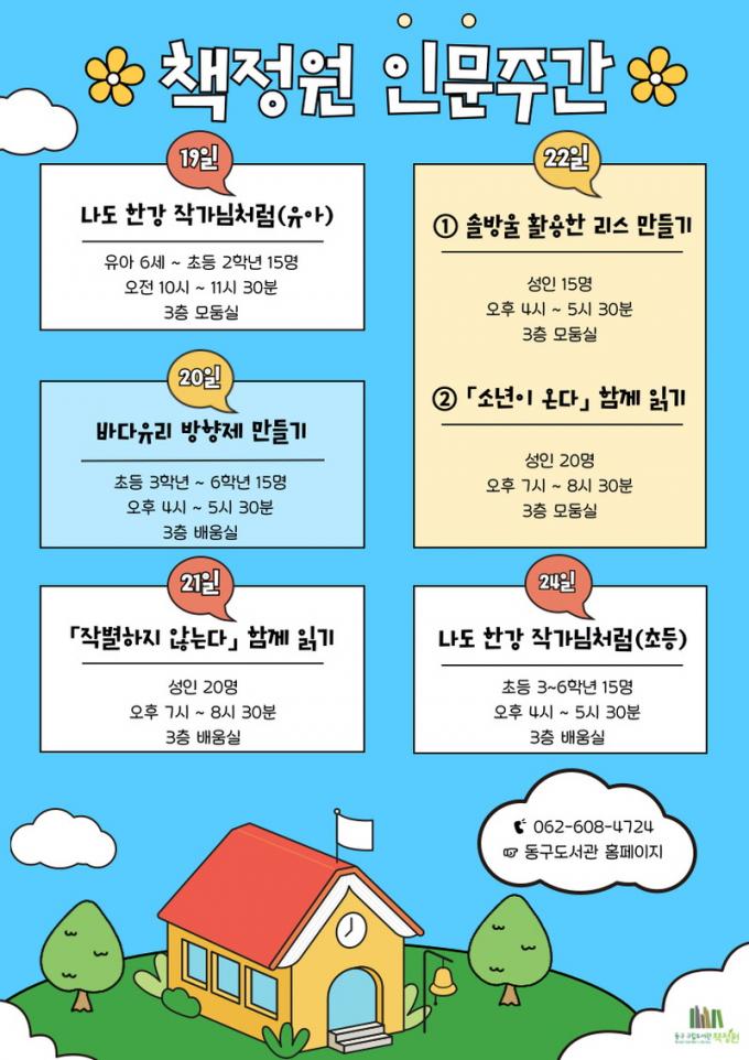 ±¤Áֽà µ¿±¸, Ã¥Á¤¿ø ¡®Àι® ÁÖ°£¡¯ ÇÁ·Î±×·¥ ¿î¿µ