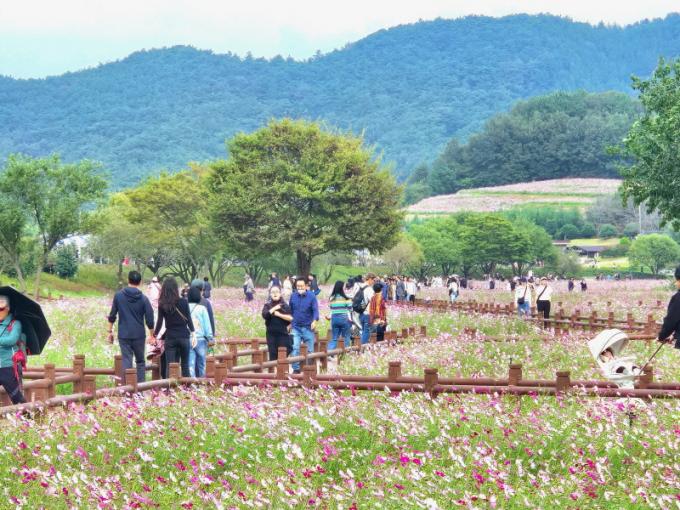 ¸é¹Î°ú ¹æ¹®°´µéÀº ²É¹ç »çÁøÀ» ³²±â¸ç °¢¾ç°¢»öÀÇ ¸ð½ÀÀ¸·Î ÃàÁ¦¸¦ Áñ°å´Ù. À̹ø ÃàÁ¦´Â ¿µ»ê°­ ÀÏ´ë 1¸¸ 2õ Æò ÄÚ½º¸ð½º ²É¹çÀ» Á¶¼ºÇØ ±âÁ¸ÀÇ 3¹è ÀÌ»óÀÇ ±Ô¸ð·Î È®´ëµÆ°í, ¸ùź¸é ÀÌÀåÇùÀÇȸ, ¹ø¿µÈ¸, ¹«¾ÈÁß±âÇùȸ µî ÀÚ¹ßÀû Àç´É±âºÎ°¡ À̾îÁ® ¸é¹ÎµéÀÇ ¼ÕÀÌ ´êÁö ¾ÊÀº °÷ÀÌ ¾ø¾î ´õ¿í ¶æ±íÀº ÃàÁ¦°¡ µÆ´Ù.