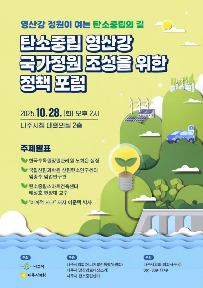 ³ªÁÖ½ÃÀÇȸ, ¡¸Åº¼ÒÁ߸³ ¿µ»ê°­ ±¹°¡Á¤¿ø¡¹ Á¶¼ºÀ» À§ÇÑ Á¤Ã¥ Æ÷·³ 10¿ù 28ÀÏ °³ÃÖ