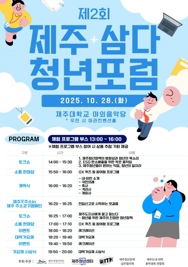 [È£³²µµ¹Î½Å¹® = ÀÓÀ±Áø ±âÀÚ] Á¦ÁÖÆ¯º°ÀÚÄ¡µµ¿Í Á¦ÁÖû³â¼¾ÅÍ(¼¾ÅÍÀå À̼ºÀç)´Â Á¦ÁÖ´ëÇб³ÃÑÇлýȸ ¹× Á¦ÁÖû³âÁ¤Ã¥ ½Ç¹«ÇùÀÇü¿Í ÇÔ²² ¿À´Â 10¿ù 28ÀÏ(È­) Á¦ÁÖ´ëÇб³ ¾ß¿ÜÀ½¾Ç´ç¿¡¼­ Á¦ÁÖ Ã»³âÆä½ºÆ¼¹ú¡¸Á¦2ȸ Á¦ÁÖ »ï´Ù û³âÆ÷·³¡¹À» °³ÃÖÇÑ´Ù°í ¹àÇû´Ù.
