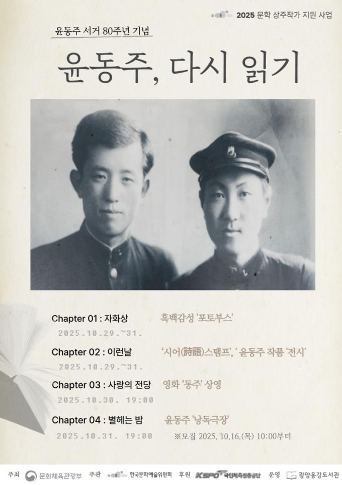À̹ø Çà»ç´Â 2025³â ¹®ÇлóÁÖÀÛ°¡Áö¿ø»ç¾÷ÀÇ ÀÏȯÀ¸·Î, À±µ¿ÁÖ ½ÃÀΰú ±¹¹®ÇÐÀÚ Á¤º´¿í ¼±»ýÀÇ Àο¬À» °£Á÷ÇÑ ±¤¾ç¿¡¼ ½Ã¹ÎµéÀÌ ¹®ÇÐÀ» º¸´Ù °¡±õ°Ô üÇèÇϰí Áö¿ªÀÇ ¹®ÈÀû Á¤Ã¼¼ºÀ» ½ÉÈÇÒ ¼ö ÀÖµµ·Ï ±âȹµÆ´Ù.