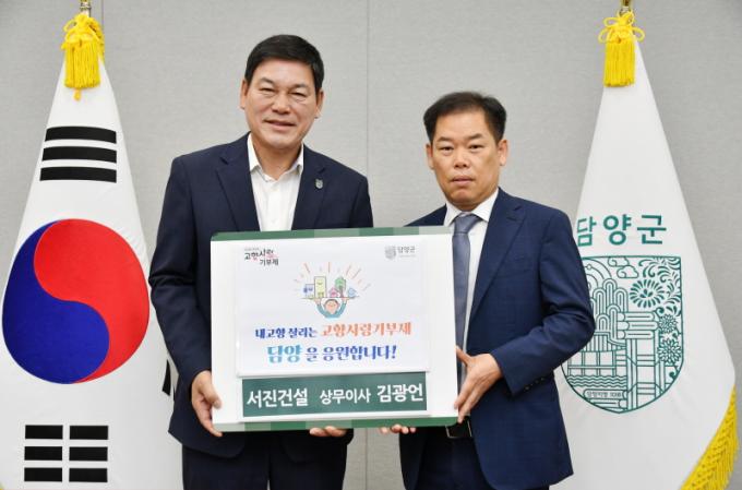 À̹ø ±âºÎ´Â ¢ß¼Áø°Ç¼³±×·ì ½Å¸íÁø ȸÀå°ú ±è±¤¾ð »ó¹«À̻簡 °íÇâ»ç¶û±âºÎÁ¦ÀÇ ÃëÁö¿¡ ±íÀÌ °ø°¨ÇÏ¸ç ´ã¾ç±ºÀÇ Áö¿ª ¹ßÀü¿¡ À̹ÙÁöÇϰíÀÚ °áÁ¤ÇÑ °ÍÀ¸·Î, °¢°¢ 500¸¸ ¿ø¾¿ ÃÑ 1,000¸¸ ¿øÀ» ±âŹÇß´Ù.
