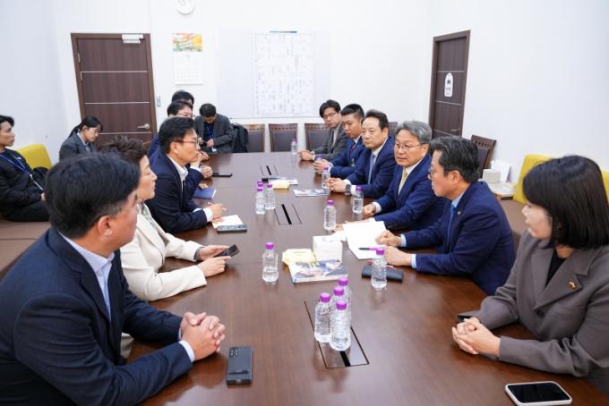 À̳¯ ±¹È¸ ¹æ¹®¿¡´Â Àü³¯ÀÎ 21ÀÏ ¹ã 8½Ã ±¤ÁÖ½Ãû¿¡¼ ¿¸° ¡®±¤Á̷ֹ¡»ê¾÷ ºñ»óȸÀÇ¡¯ÀÇ °áÀÇ¿¡ µû¸¥ °ÍÀ¸·Î, °±âÁ¤ ½ÃÀå°ú ÀÓÅà µ¿±¸Ã»Àå, äÀºÁö ±¤ÁÖ½ÃÀÇȸ ºÎÀÇÀå, Á¤Áö¼º ÀΰøÁö´É»êÇп¬ÇùȸÀå, À̱âÈÆ ±¤ÁֽùλçȸÁö¿ø¼¾ÅÍÀå µî 5¸íÀÌ ´ëÇ¥·Î Âü¼®Çß°í, ¹Ú±ÕÅà ±¹È¸ÀÇ¿øÀÌ µ¿¼®Çß´Ù.
