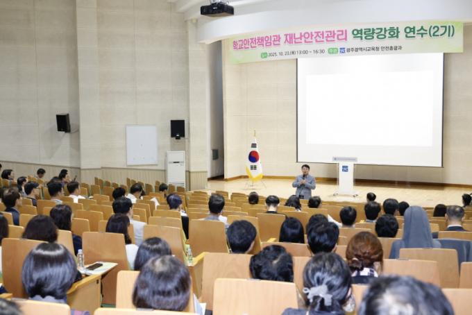 [È£³²µµ¹Î½Å¹® = ÀÓÀ±Áø ±âÀÚ] ±¤Áֽñ³À°Ã»(±³À°°¨ ÀÌÁ¤¼±)Àº 23ÀÏ ±¤Áֽñ³À°Ã»½Ã¹ÎÇùÄ¡ÁøÈï¿ø ´ë°­´ç¿¡¼­ Çб³Àå, ±³°¨, ÇàÁ¤½ÇÀå µî 350¿© ¸íÀ» ´ë»óÀ¸·Î ¡®2025Çг⵵ Çб³¾ÈÀüÃ¥ÀÓ°ü Àç³­¾ÈÀü°ü¸® ¿ª·®°­È­ ¿¬¼ö(2±â)¡¯¸¦ ½Ç½ÃÇß´Ù.