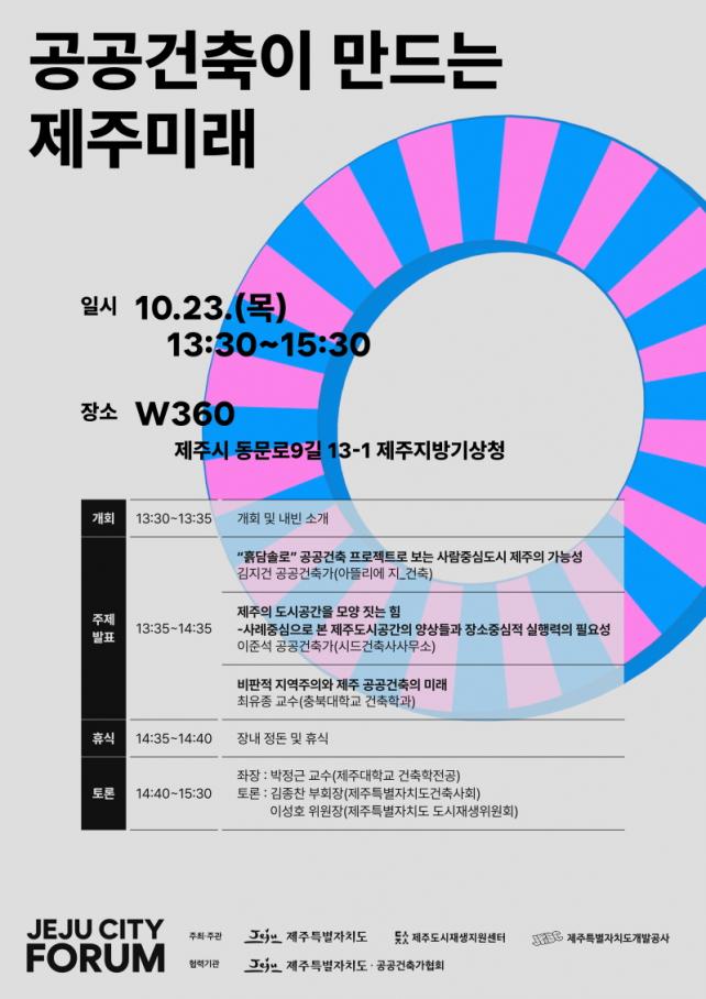 ¿À´Ã ¿¸®´Â ù ¹øÂ° ¿öÅ©¼óÀº ¡¸°ø°ø°ÇÃàÀÌ ¸¸µå´Â Á¦Á̷ֹ¡¡¹¸¦ ÁÖÁ¦·Î ¡â¾Æ¶ã¸®¿¡ Áö_°ÇÃà ±èÁö°Ç ´ëÇ¥´Â ¡°Èë´ã¼Ö·Î, °ø°ø°ÇÃà ÇÁ·ÎÁ§Æ®·Î º¸´Â »ç¶÷Á᫐ µµ½Ã Á¦ÁÖÀÇ °¡´É¼º¡±, ¡â½Ãµå°ÇÃà»ç»ç¹«¼Ò ÀÌÁؼ® ´ëÇ¥´Â ¡°Á¦ÁÖÀÇ µµ½Ã°ø°£À» ¸ð¾ç Áþ´Â Èû – »ç·Ê·Î º» Á¦ÁÖÀÇ µµ½Ã°ø°£ ¾ç»ó°ú Àå¼Ò Áß½ÉÀû ½ÇÇàÀÇ Çʿ伺¡±À» ¹ßÇ¥ÇÑ´Ù. ÀÌ¾î¼ ¡âÃæºÏ´ëÇб³ °ÇÃàÇаú ÃÖÀ¯Á¾ ±³¼ö´Â ¡°ºñÆÇÀû Áö¿ªÁÖÀÇ¿Í Á¦ÁÖ °ø°ø°ÇÃàÀÇ ¹Ì·¡¡±¿¡ ´ëÇÏ¿© ¹ßÇ¥°¡ ÁøÇàµÈ´Ù. ÀÌÈÄ ¡âÁ¦ÁÖ´ëÇб³ °ÇÃàÇÐÀü°ø ¹ÚÁ¤±Ù ±³¼öÀÇ »çȸ·Î ÁÖÁ¦ Åä·ÐÀÌ ÁøÇàµÈ´Ù.