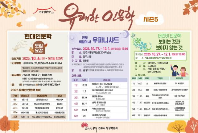 ÀÌ¿Í °ü·Ã ÀüÁÖ½ÃÆò»ýÇнÀ°ú´Â ¿ÃÇØ À¯ÄèÇÑ Àι®ÇÐÀ» ¡®°íÀü°ú Çö´ë Àι®ÇС¯À» ÁÖÁ¦·Î Á¤Çϰí, ¡âµ¿¾ç°íÀüÀÇ Á¤¼öÀÎ ÁÖ¿ª °ÀÇ¿Í ´Ïü¿Í Çູ ¡âÀ½¾ÇÀι®ÇÐ ¡âÇö´ëöÇÐ ¡âµ¿¼¹ÌÇÐÀÇ ¹®È·Ð ¡âÀεµÃ¶ÇÐ ÃÑ 5°³ ½ÃÁðÀ» ¿î¿µÇϰí ÀÖ´Ù.