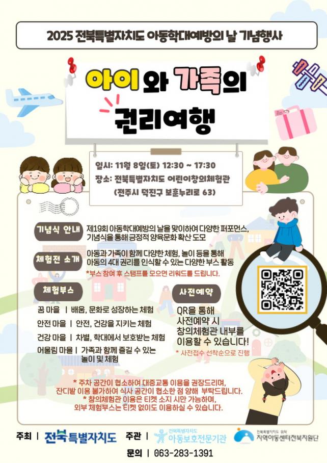 À̹ø 2025 ¾Æµ¿Çд뿹¹æÀÇ ³¯ ±â³ä½Ä°ú ¾Æµ¿±Ç¸®Ã¼ÇèÀüÀº ¾Æµ¿Çд뿹¹æÀÇ ³¯À» ±â³äÇÏ¿© ¿¹¹æÈ°µ¿À» ÃßÁøÇÑ ´ëÀÀÀηÂÀÇ ³ë°í¸¦ Ä¡ÇÏÇϰí, µµ¹Î¿¡°Ô °¡Á·Ã¼ÇèÇÁ·Î±×·¥À» Á¦°øÇÏ¿© ¾Æµ¿±Ç¸® ÀνÄÀ» Çâ»ó½Ã۱â À§ÇØ ¸¶·ÃµÈ Çà»çÀÌ´Ù.