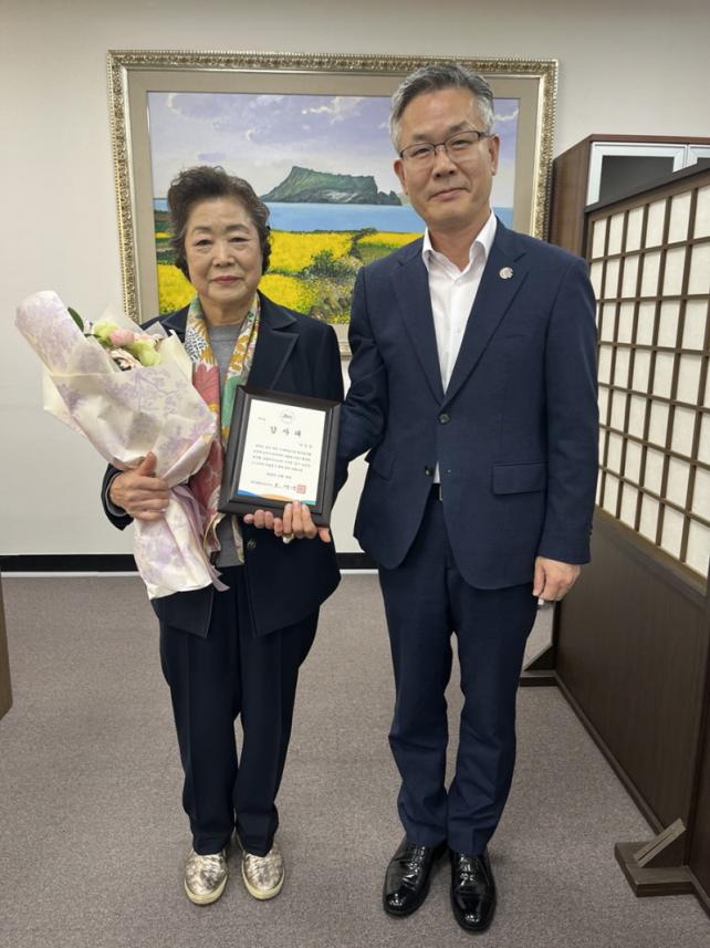 Á¦ÁÖµµ´Â 24ÀÏ ¿ÀÈÄ µµÃ» ÇàÁ¤ºÎÁö»ç½Ç¿¡¼ À̽ż÷ ¾¾¿¡°Ô °¨»çÆÐ¸¦ Àü´ÞÇß´Ù. ÀÌ ¾¾°¡ ±âºÎÇÑ ÅäÁö´Â ¼±ÍÆ÷½Ã ¾È´ö¸é µ¿±¤¸® »ê3-49¹øÁö ÀÏ´ë·Î, Á¦ÁÖ °íÀ¯ÀÇ »ýÅÂȯ°æÀ» º¸¿©ÁÖ´Â °ùÀÚ¿Ð Áö¿ª¿¡ À§Ä¡ÇÑ´Ù.