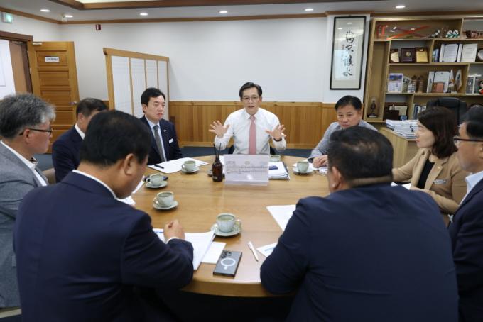 À̳¯ °£´ãȸ¿¡¼­ ¿µ¾Ï±ºÀº Àü¶ó³²µµÀÇ¿ø¿¡°Ô ¡®¿¡³ÊÁö Áö»êÁö¼Ò ±×¸°½ÃƼ 100¡¯, ³ó¾î¹Î °øÀͼö´ç Áö±Þ È®´ë, ±¹Á¦ ¹ÙµÏ¿¬¼ö¿ø °Ç¸³ µî ¿ªÁ¡ ½ÃÃ¥À» ¼³¸íÇϰí, µµÁ¤ ¹Ý¿µ ¹× Áö¿ø ¹æ¾È¿¡ ´ëÇØ ÀǰßÀ» ³ª´³´Ù.