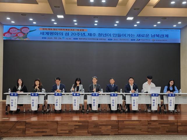 º¯Á¾Çå Á¦ÁÖ´ë ±³À°´ëÇÐ ±³¼öÀÇ »çȸ·Î ÁøÇàµÈ Á¦2ºÎ ¡°¼¼°èÆòÈÀÇ ¼¶ Á¦ÁÖ, ÆòÈ¡¤ÅëÀÏÀÇ ±æ¡± ÅäÅ©ÄܼƮ¿¡¼´Â ±è±Ô¸® ÀÌÈ¿©´ë ÅëÀÏÇבּ¸¿ø °´¿ø¿¬±¸À§¿øÀÇ ¡®ºÏÇÑÀÇ ´ë³² Àû´ë½Ã Á¤Ã¥°ú ÆòÈ¿Í ÅëÀÏÀ» À§ÇÑ Á¦ÁÖ Ã»³âÀÇ ¿ªÇÒ¡¯À» ÁÖÁ¦·Î ¹ßÁ¦¸¦ ÇÏ¿´°í, °´öºÎ Àü Á¦ÁÖÆòÈÅëÀÏÆ÷·³ ¿¬±¸À§¿øÀå, °í°ü¿ë Á¦ÁÖÇѶó´ë ±³¼ö, ±è°æº¸ Á¦ÁÖ½ºÆä¼È¿Ã¸²ÇÈÄÚ¸®¾Æ ȸÀå, ÀÌÀ±°æ ¼±ÍÆ÷YWCA ±¹Àå, ÀÌÀ¯¿ø Á¦ÁÖ´ë ±³À°´ëÇÐ Çлý, °í¹ÎÁÖ Á¦ÁÖ´ë ¿µ¾î¿µ¹®Çаú Çлý, ¹èÇöÁØ Á¦ÁÖÇѶó´ë °£È£Çаú ÇлýÀÌ ÅäÅ©¸¦ À̾´Ù.