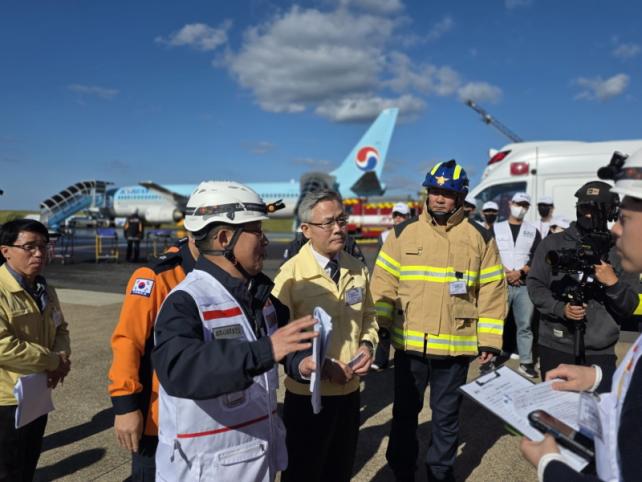 Á¦ÁÖ±¹Á¦°øÇ× È¹°Ã»»ç °è·ùÀå¿¡¼´Â Á¦ÁÖ½Ã¿Í Á¦ÁÖ¼Ò¹æ¼, Á¦ÁÖÁö¹æÇ×°øÃ», Çѱ¹°øÇ×°ø»ç, Ç×°ø»ç, Á¶¾÷»ç, ÀÀ±ÞÀÇ·á±â°ü µîÀÌ Âü¿©ÇØ ÇöÀåÈÆ·ÃÀ» ½Ç½ÃÇß´Ù. Ç×°ø±â »ç°í ÀÎ¸í±¸Á¶¿Í ÈÀçÁø¾Ð, ¼ö½À¡¤º¹±¸ µî ½ÇÀü »óȲÀ» °¡Á¤ÇÑ ÈÆ·ÃÀÌ ÁøÇàµÆ´Ù. ÈÆ·ÃÆò°¡¹Ý°ú µµ¹ÎÀ¸·Î ±¸¼ºµÈ ±¹¹ÎüÇè´Üµµ ÈÆ·Ã °úÁ¤À» Âü°üÇϸç Àç³ ´ëÀÀ ü°è¸¦ Á÷Á¢ »ìÆìºÃ´Ù.