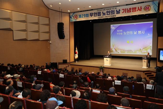 ±è»ê ±º¼ö´Â¡°Á¦29ȸ ¹«¾ÈÀ¾ ³ëÀÎÀÇ ³¯À» Áø½ÉÀ¸·Î ÃàÇϵ帮¸ç, ¿À´ÃÀÇ ¹«¾ÈÀÌ ÀÖ±â±îÁö Çå½Å°ú ³ë·ÂÀ» ¾Æ³¢Áö ¾ÊÀ¸½Å ¾î¸£½Åµé²² ±íÀº Á¸°æ°ú °¨»çµå¸°´Ù¡±¸ç, ¡°¾ÕÀ¸·Îµµ ¾î¸£½ÅµéÀÌ ´õ¿í ÇູÇϰí Ȱ±âÂù ³ëÈĸ¦ º¸³¾ ¼ö ÀÖµµ·Ï ¡®¹«¾ÈÀ» ´õ Å©°Ô, ¾î¸£½ÅµéÀÇ »îÀ» ´õ ³ô°Ô¡¯ ¸¸µé¾î °¡°Ú´Ù¡±°í ¸»Çß´Ù.