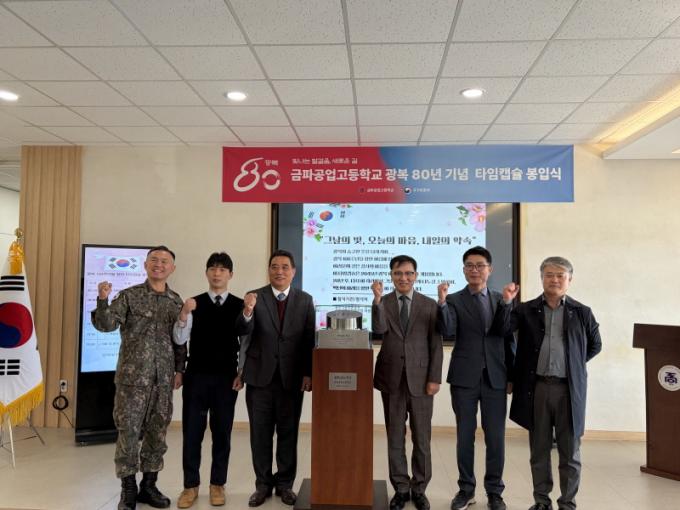 Çà»ç´Â Çлý´ëÇ¥ÀÇ µ¶¸³¼±¾ð¼ ³¶µ¶, ŸÀÔĸ½¶ ºÀÀÔÀÚ·á ¿µ»ó½Ãû, ºÀÀÔ½Ä ¼øÀ¸·Î ÁøÇàµÆÀ¸¸ç, ŸÀÓĸ½¶¿¡´Â ±¤º¹ 100ÁÖ³âÀÌ µÇ´Â 2045³â ÈĹèµé¿¡°Ô ÀüÇÒ µ¶¸³¼±¾ð¼¿Í ÀçÇлýµéÀÇ ÆíÁö, ÇлýµéÀÇ ÀÏ»ó°ú Çб³ ¹®È¸¦ »ý»ýÈ÷ ±â·ÏÇÑ USB µîÀÇ ¹°Ç°µéÀÌ ´ã°å´Ù.