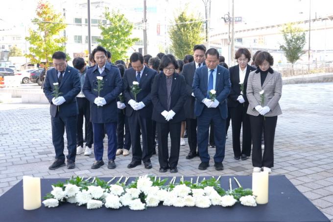 ³²±¸ÀÇȸ ÀÇ¿øµéÀº Ã߸ð½ÄÀ» ÅëÇØ ¡°±×³¯ÀÇ ¾ÆÇÄÀ» ÀØÁö ¾Ê°í, ÀÌÅ¿ø Âü»ç Èñ»ýÀÚµéÀÇ ³ÌÀ» ±â¸®¸ç À¯°¡Á·µéÀÇ ½½ÇÄÀ» ÇÔ²² ³ª´©°Ú´Ù¡±°í ¶æÀ» ÀüÇß´Ù.