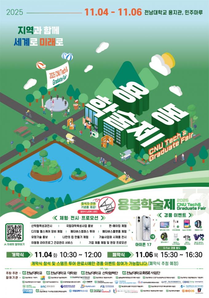 30ÀÏ Àü³²´ë¿¡ µû¸£¸é, ¿À´Â 11¿ù 4ÀϺÎÅÍ 6ÀϱîÁö »çÈê°£ ´ëÇÐ ¿ëÁö°ü°ú ¹ÎÁÖ¸¶·ç ÀÏ¿ø¿¡¼¡®2025 Àü³²´ëÇб³ ¿ëºÀÇмúÁ¦(CNU Tech & Graduate Fair)¡¯°¡ ¿¸°´Ù. ¿ÃÇØ ½½·Î°ÇÀº ¡®Áö¿ª°ú ÇÔ²² ¼¼°è·Î ¹Ì·¡·Î¡¯·Î, ´ëÇÐÀÌ ÃàÀûÇÑ ¿¬±¸¼º°ú¿Í »ê¾÷ÇöÀåÀÇ Çõ½Å ¿ª·®À» °øÀ¯Çϰí, Áö¿ª°ú ¼¼°è¸¦ ÀÕ´Â À¶º¹ÇÕ Áö½Ä »ýŰèÀÇ ÀåÀ¸·Î ²Ù¸çÁø´Ù.