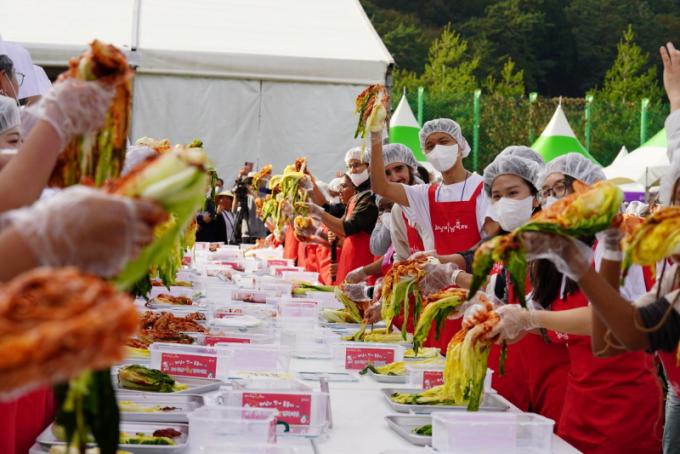 ¿ÃÇØ ÁÖÁ¦ÀΡ®Çس²±è¡¯ÁÖÁ¦°ü¿¡¼´Â ±è °ü·Ã Àü½Ã¿Í ÇÔ²² ÇØ³²8¹Ì¸¦ ¼Ó Àç·á·Î ÇØ ³ª¸¸ÀÇ ±è¹äÀ» ¸¸µé¾îº¼ ¼ö ÀÖ´Â ¹Ì³²±è¹ä ÆË¾÷Á¸ÀÌ ¿î¿µµÈ´Ù. 11¿ù 1ÀÏ ³·12½ÃºÎÅÍ Çѽ𣵿¾È ÁøÇàµÇ¸ç, ¼ÒÁ¤ÀÇ Âü°¡ºñ¸¦ ³»¸é Âü¿©ÇÒ ¼ö ÀÖ´Ù. ÃàÁ¦±â°£ µ¿¾È ÇØ³²±º¼öÇù¿¡¼´Â Á¶¹Ì±è µî ±è °¡°øÇ°À» 50% ÇÒÀÎµÈ °¡°Ý¿¡ ÆÇ¸ÅÇϴ¡®Çس²±è ¹Ý°ªÀü¡¯µµ °®´Â´Ù.