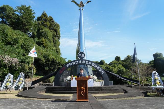 °´ö¸² ÅÂÆò¾çÀüÀïÈñ»ýÀÚÀ¯Á·È¸ Á¦ÁÖµµÁöºÎÀåÀº ÁÖÁ¦»ç¿¡¼ ¡°ÀÏÁ¦ÀÇ ¾ß¿åÀ¸·Î ½ÃÀÛµÈ ÅÂÆò¾çÀüÀïÀ¸·Î ´ëÇѹα¹ ¶¥¿¡¼¸¸ 300¸¸ ¸íÀÌ ³Ñ´Â ÇÇÇØ¸¦ ÀÔ¾ú°í, Á¦ÁÖ¿¡µµ ¼ö¸¹Àº Èñ»ýÀÚ¿Í À¯Á·µéÀÌ ÀÖ´Ù¡±¸ç "ÅÂÆò¾çÀüÀïÀº °ú°Å°¡ ¾Æ´Ï¶ó ÇöÀç¿¡µµ °è¼ÓµÇ°í ÀÖ´Ù¡±°í ¸»Çß´Ù.