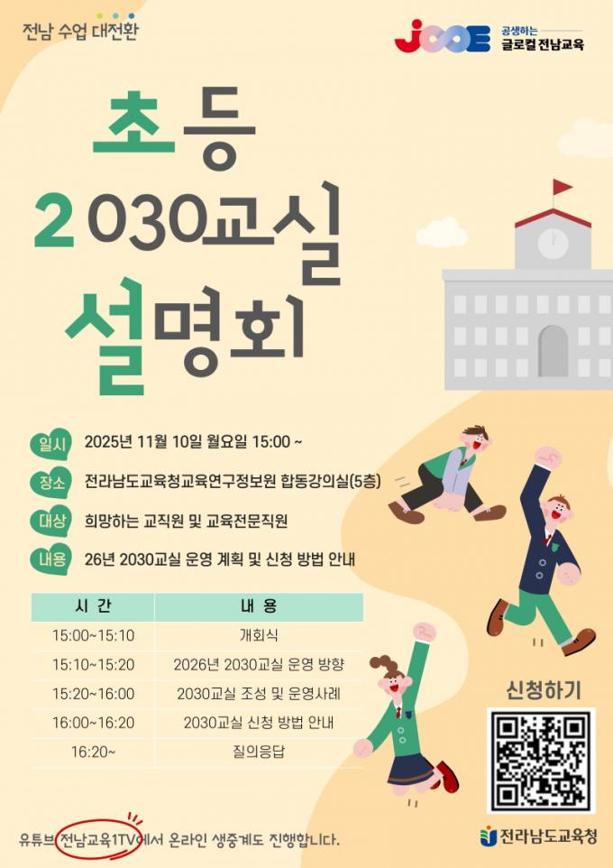 ÀÌ¿Í °ü·ÃÇØ Àü³²±³À°Ã»Àº ¿À´Â 10ÀÏ ¿ÀÈÄ 3½Ã Àü¶ó³²µµ±³À°Ã»±³À°¿¬±¸Á¤º¸¿ø¿¡¼­ ¡®Ãʵî 2030±³½Ç ¼³¸íȸ¡¯¸¦ ¿­¾î 2026Çг⵵ 2030±³½Ç ¿î¿µ °èȹ°ú ½Åû ¹æ¹ýÀ» ¾È³»ÇÑ´Ù. ¼³¸íȸ´Â ¿î¿µ ¹æÇ⠾ȳ»¿Í »ç·Ê ³ª´®, ½Åû ÀýÂ÷ ¹× ÁúÀÇÀÀ´ä ¼øÀ¸·Î ÁøÇàµÇ¸ç, °ü½É ÀÖ´Â ±³Á÷¿øÀº °ø¹® ¹× Æ÷½ºÅÍ QRÄڵ带 ÅëÇØ Âü¿©ÇÒ ¼ö ÀÖ´Ù. ´çÀÏ Çà»ç´Â À¯Æ©ºê ¡®Àü³²±³À°1TV¡¯¸¦ ÅëÇØ ½Ç½Ã°£ Áß°èµÈ´Ù.