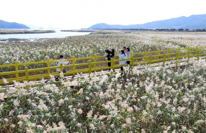 Áö¿ª°ú ÇÔ²²ÇÏ´Â Âü¿©Çü Çà»çµµ ÃàÁ¦¸¦ ´õ¿í dz¼ºÇÏ°Ô ¸¸µé¾ú´Ù. °Áø ½Ò±Í¸® È«º¸°ü°ú Ư»êǰ ÆÇ¸Å°ü, °¡À» ±¹ÈÀü½Ã µîÀº °ü±¤°´µé¿¡°Ô º¼°Å¸®¿Í ¸Ô°Å¸®¸¦ Á¦°øÇß´Ù. ƯÈ÷ »¡°, ³ë¶û, ÁÖȲ, ÇÏ¾ç µî °¢¾ç°¢»öÀÇ ±¹È²É ȺР2¸¸°³·Î ÀÌ·ïÁø ±¹È²É Á¤¿øÀº ÃàÁ¦°¡ ³¡³ µÚ¿¡µµ ¿À´Â 9ÀϱîÁö °è¼Ó Àü½ÃµÅ °Áø¸¸À» ãÀº °ü±¤°´µé¿¡°Ô ½°°ú ¿©À¯¸¦ ÁÙ °èȹÀ̶ó°í °Áø±º ³ó¾÷±â¼ú¼¾ÅÍ ÃÖ¿µ¾Æ ¼ÒÀåÀº ¹àÇû´Ù.