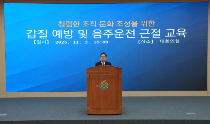 ³ªÁÖ½Ã(½ÃÀå À±º´ÅÂ)´Â Áö³ 3ÀÏ ½Ãû ´ëȸÀǽǿ¡¼ Àü Á÷¿øÀÌ Âü¼®ÇÑ °¡¿îµ¥ ¡®°©Áú ¿¹¹æ ¹× À½ÁÖ¿îÀü ±ÙÀý ±³À°¡¯À» ÁøÇàÇß´Ù°í 4ÀÏ ¹àÇû´Ù. À̹ø ±³À°Àº û·ÅÇϰí Á¸Áß¹Þ´Â °øÁ÷¹®È¸¦ Á¤Âø½Ã۱â À§ÇÑ Áö¼ÓÀûÀÎ ³ë·ÂÀÇ ÀÏȯÀÌ´Ù.