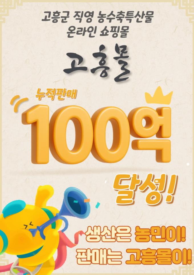 ÇÑÆí, °íÈï¸ôÀº 2019³â °³¼³ ÀÌÈÄ Áö¿ª ³ó¼öƯ»ê¹° ÆÇ·Î È®´ë¸¦ À§ÇØ ´Ù¾çÇÑ Å׸¶ ±âȹÀü°ú ¼ÒºñÀÚ ¸ÂÃãÇü À̺¥Æ®¸¦ ¿î¿µ ÁßÀ̸ç, Áö³´Þ ´©Àû ¸ÅÃâ 100¾ï ¿øÀ» µ¹ÆÄÇϸç Áö¿ª ¿Â¶óÀÎ ¼îÇθôÀÇ ´ëÇ¥ ¼º°ø »ç·Ê·Î ÀÚ¸®¸Å±èÇϰí ÀÖ´Ù.