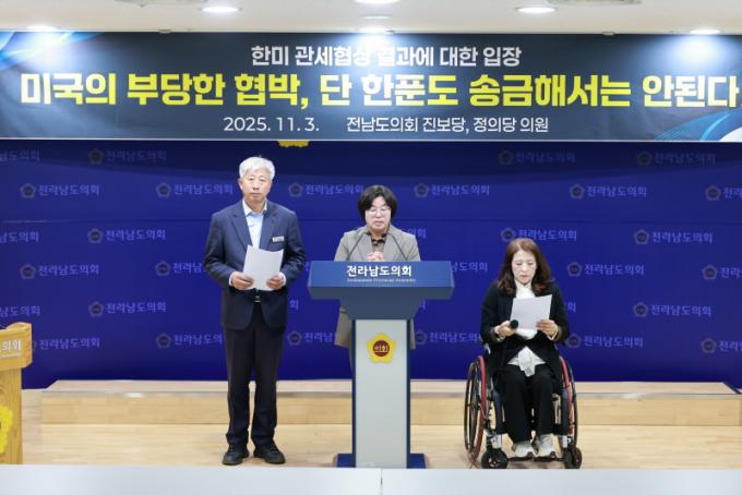 Áøº¸´ç.Á¤ÀÇ´ç ¼Ò¼Ó Àü³²µµÀÇ¿øµéÀº À̳¯ ±âÀÚȸ°ßÀ» ÅëÇØ ¡ãÁ¤ºÎÀÇ ÇÑ¹Ì °ü¼¼ Çù»ó ÇùÁ¤¹® ¹× °ü·Ã Çù¾à ³»¿ë Àü¸é °ø°³ ¡ã±¹È¸ÀÇ Çù»ó ºñÁØ µ¿ÀÇ °ÅºÎ ¡ã¹Ì±¹ÀÇ °¾ÐÀû °ü¼¼ Çù¹Ú Áߴܰú ±¹Á¦±Ô¹ü Áؼö¸¦ °·ÂÈ÷ ¿ä±¸Çß´Ù.
