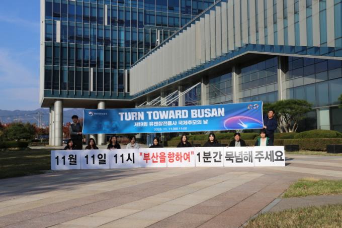[È£³²µµ¹Î½Å¹® = ÀÓÀ±Áø ±âÀÚ] ±¤ÁÖÁö¹æº¸ÈÆÃ»(ûÀå ±è¼®±â)¿¡¼´Â 5ÀÏ ¡®À¯¿£ÂüÀü¿ë»ç ±¹Á¦Ã߸ðÀÇ ³¯(11.11)¡¯À» ¾ÕµÎ°í ¼¼°è À¯ÀÏÀÇ À¯¿£±â³ä°ø¿øÀÌ ÀÖ´Â ºÎ»êÀ» ÇâÇÏ¿© Àü ±¹¹ÎÀÌ 1ºÐ°£ Ã߸𠹬³äÇÏ´Â ¡®ÅÏ Åõ¿öµå ºÎ»ê(Turn Toward Busan)¡¯ È«º¸ Ä·ÆäÀÎÀ» Á÷¿øµéÀÌ ÇÔ²² Á¤ºÎ±¤ÁÖÇÕµ¿Ã»»ç ±¤Àå¿¡¼ ½Ç½ÃÇÏ¿´´Ù.