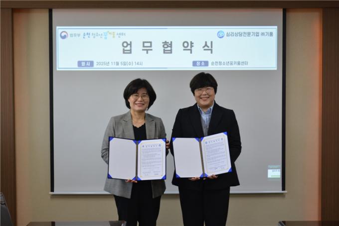 [È£³²µµ¹Î½Å¹® = ÀÓÀ±Áø ±âÀÚ] ¹ý¹«ºÎ(Àå°ü Á¤¼ºÈ£) ¼øÃµÃ»¼Ò³â²ÞŰ¿ò¼¾ÅÍ´Â 5ÀÏ Á¤½Å°Ç°­ ¹®Á¦ µîÀ¸·Î ÀçºñÇà À§Ç輺ÀÌ ³ôÀº û¼Ò³âµéÀ» Àü¹®ÀûÀ¸·Î Áö¿øÇϱâ À§ÇØ Áö¿ª Àü¹®»ó´ã±â°üÀÎ º½ÀǾð´ö »ó´ã½É¸®¼¾ÅÍ, ¢ß±âǰ°ú ¾÷¹«Çù¾àÀ» ü°áÇß´Ù°í ¹àÇû´Ù.