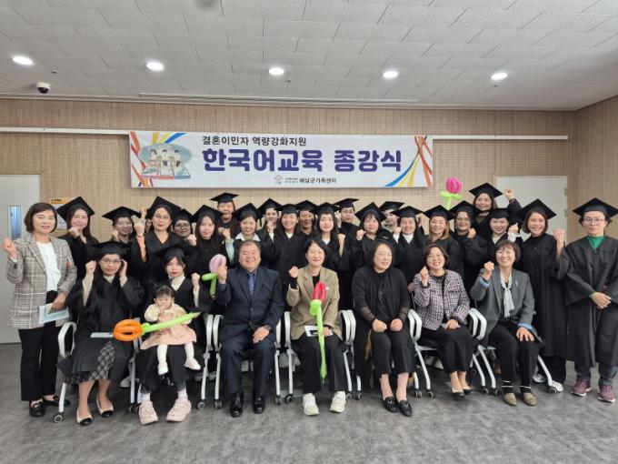 ÇØ³²±º °ü°èÀڴ¡°Çѱ¹¾î±³À°Àº ´Ü¼øÇÑ ¾ð¾î ÇнÀÀÌ ¾Æ´Ï¶ó ¼·ÎÀÇ ¹®È¸¦ ÀÌÇØÇÏ°í ¸¶À½À» ³ª´©´Â °úÁ¤À̶ó¸ç, À̹ø ±³À°À» ÅëÇØ °áÈ¥À̹ÎÀÚµéÀÌ Áö¿ª»çȸ ¼Ó¿¡¼ ´õ¿í Àڽۨ ÀÖ°Ô ¼ÒÅëÇϰí, ÇູÇÑ °¡Á·°ú µû¶æÇÑ °øµ¿Ã¼ÀÇ ÀÏ¿øÀ¸·Î ¼ºÀåÇϱ⠹ٶõ´Ù¡±°í ¹àÇû´Ù.