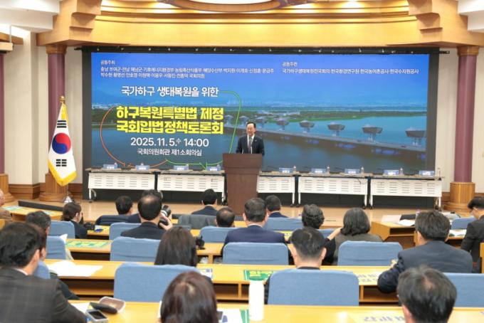 Âü¼®ÀÚµéÀº ÇÏ±ÂµÏ °Ç¼³ ÀÌÈÄ »ý°Ü³ °°ú ¹Ù´ÙÀÇ ¼øÈ¯ ´ÜÀý·Î ´©ÀûµÈ ¼öÁú¿À¿°°ú »ý¹°´Ù¾ç¼º ÈѼÕ, ¿¬¾È½ÀÁö ȲÆóÈ µî º¹ÇÕ ¹®Á¦¸¦ ÇØ°áÇϱâ À§ÇØ Á¶¼ÓÇÑ Çϱ¸º¹¿øÆ¯º°¹ý Á¦Á¤°ú ¾ÈÁ¤Àû Àç¿ø È®º¸, ÀÌÇØ°ü°èÀÚ Âü¿©¿¡ ±â¹ÝÇÑ °Å¹ö³Í½º ±¸ÃàÀÌ ÇÊ¿äÇÏ´Ù´Â µ¥ ÀǰßÀ» ¸ð¾Ò´Ù.