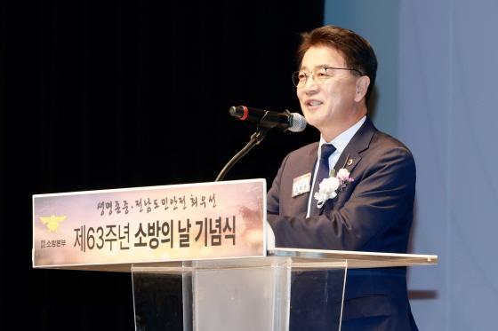 ÇÑÆí, ¡®»ý¸í°ú ¾ÈÀü, ÇູÀ» ¿©´Â 119¡¯¶ó´Â ½½·Î°ÇÀ¸·Î ¿¸° À̹ø ±â³äÇà»ç´Â Á¦63Áֳ⠼ҹæÀÇ ³¯À» ¸Â¾Æ Àü³² ¡®ÃÖÃÊ µµ ´ÜÀ§ ¼Ò¹æÀÇ ³¯ ±â³ä½Ä¡¯À» °®°Ô µÇ¾î Àǹ̸¦ ´õ Çß´Ù.