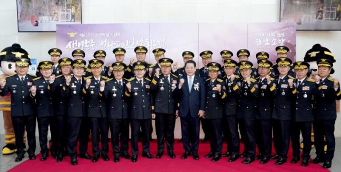 À̹ø Çà»ç´Â Àü³² ÃÖÃÊ µµ ´ÜÀ§·Î ¿¸®´Â ¼Ò¹æÀÇ ³¯ ±â³ä½ÄÀ¸·Î, µµ¹ÎÀÇ ¾ÈÀüÀ» Áö۱â À§ÇØ Çå½ÅÇÑ ¼Ò¹æ°ø¹«¿ø°ú ÀÇ¿ë¼Ò¹æ´ë¿ø, À¯°ø µµ¹ÎÀÇ ³ë°í¸¦ °Ý·ÁÇÏ°í ±× °øÇåÀ» ³Î¸® ¾Ë¸®±â À§ÇØ °³ÃֵƴÙ. ±â³ä½Ä¿¡´Â ±è¿µ·Ï Àü³²µµÁö»ç, ±èÅÂ±Õ Àü³²µµÀÇȸ ÀÇÀå µî ÁÖ¿ä Àλç¿Í ¼Ò¹æ°ø¹«¿ø, ÀÇ¿ë¼Ò¹æ´ë¿ø, À¯°ü±â°ü °ü°èÀÚ µî 600¿© ¸íÀÌ Âü¼®ÇØ ÀÚ¸®¸¦ ºû³Â´Ù.