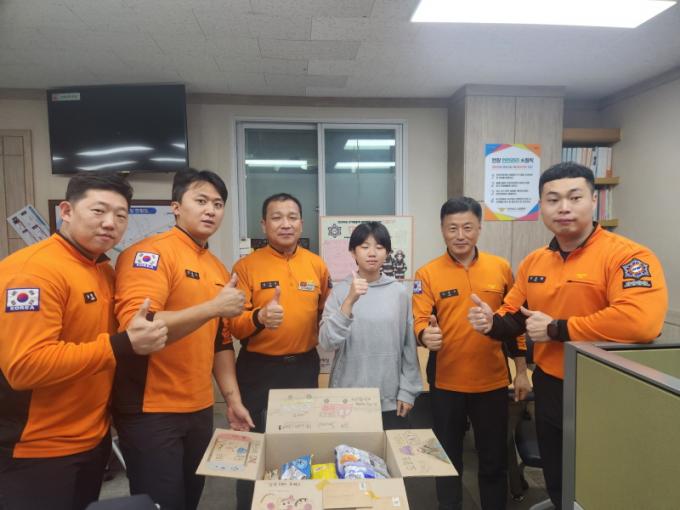 [È£³²µµ¹Î½Å¹® = ÀÓÀ±Áø ±âÀÚ] 11¿ù 7ÀÏ ±¤¾ç¼Ò¹æ¼ Á߸¶119¾ÈÀü¼¾ÅÍ ¼Ò¹æ°üµé¿¡°Ô ±ô¦ ¼±¹°ÀÌ Ã£¾Æ¿Ô´Ù. ±¤¾ç Áß¾ÓÃÊ 6Çгâ ÀåÁÖºó ÇлýÀÌ ¼Ò¹æÀdz¯À» ±â³äÇÏ¿© ¼Ò¹æ°ü¿¡°Ô °¨»çÀÇ ÆíÁö¿Í À§¹®Ç° µîÀ» Àü´ÞÇÏ¿´´Ù.