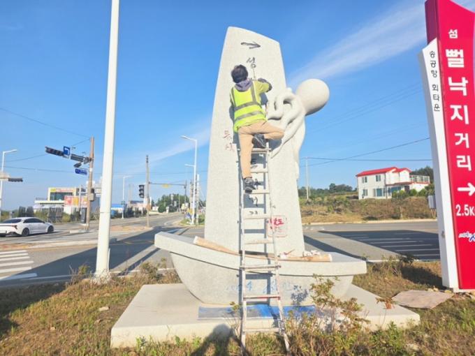 ½Å¾È±ºÀº 2017³â Àü¶ó³²µµ ¡®³²µµÀ½½Ä°Å¸® Á¶¼º °ø¸ð »ç¾÷¡¯¿¡ ¼±Á¤µÇ¾î, 2019³â ¾ÐÇØÀ¾ ¼Û°øÇ× ÀÏ¿ø¿¡ ¾È³» Ç¥ÁöÆÇ°ú ³«Áö¸¦ »ó¡ÇÏ´Â Á¶Çü¹°À» ¼³Ä¡ÇÏ´Â µî °ü±¤ ¸í¼Ò Á¶¼º¿¡ Èû½á¿Ô´Ù.