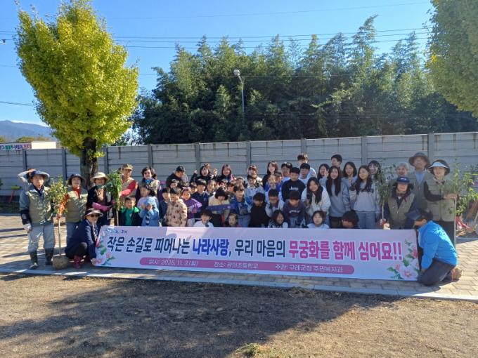 ÇÁ·Î±×·¥¿¡´Â Çлý, Çкθð, ÀÚ¿øºÀ»çÀÚ µî 60¿© ¸íÀÌ Âü¿©Çß´Ù. ù³¯¿¡´Â ÇлýµéÀÌ Çб³ ´ãÀå ÁÖº¯¿¡ ¹«±Ãȸ¦ Á÷Á¢ ½É°í, ÀÚ½ÅÀÌ ¾´ ¼Õ±Û¾¾ Ç©¸»À» ¹«±ÃÈ ¾Õ¿¡ ¼³Ä¡Çϸç Àǹ̸¦ ´õÇß´Ù.