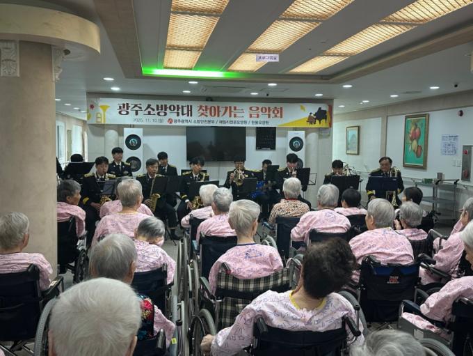 À̳¯ °ø¿¬¿¡¼ ±¤ÁÖ¼Ò¹æ¾Ç´ë¿øµéÀº 50¿©¸íÀÇ ¾î¸£½ÅµéÀ» À§ÇØ Å¬¶ó¸®³Ý¡¤ÇÃ·çÆ®¡¤»ö¼ÒÆù¡¤º£À̽º µîÀ¸·Î ±¸¼ºµÈ ¾Ó»óºí ¹«´ë¸¦ ²Ù¸ç ÃÑ 9°îÀ» ¿¬ÁÖÇß´Ù. »ýµ¿°¨ ³ÑÄ¡´Â ¼±À²¿¡ ¾î¸£½ÅµéÀº ȯÇÑ ¹Ì¼Ò·Î È´äÇϸç Áñ°Å¿î ½Ã°£À» º¸³Â´Ù.